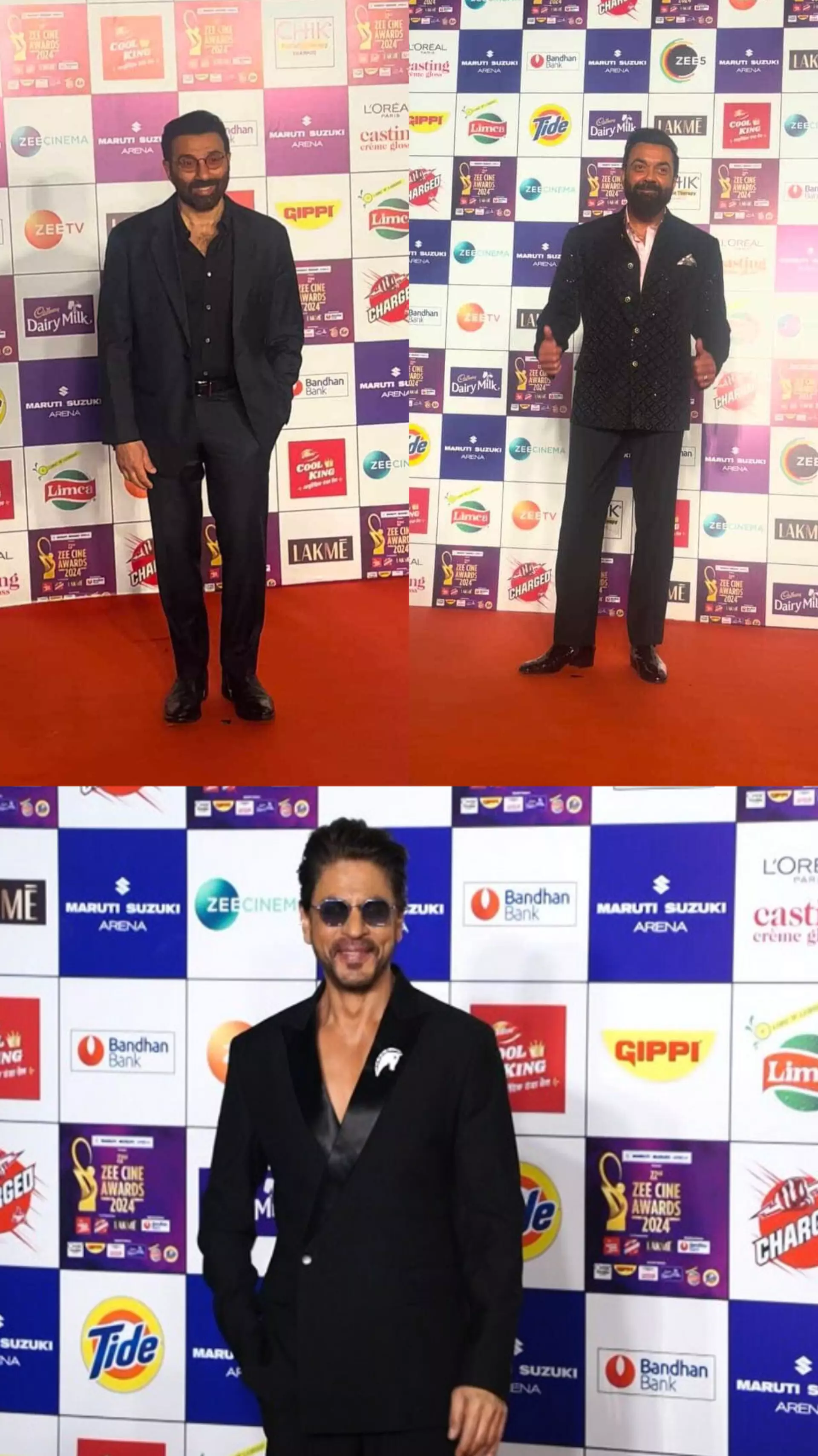 शाहरुख खान अपनी फिल्म "पठान" और "जवान" के लिए बेस्ट एक्टर का पुरस्कार जीतने के लिए सबसे चर्चित हस्ती थे। उन्होंने ब्लैक सूट में बेहद शानदार लुक कैरी किया था। सनी देओल और बॉबी देओल फिल्म "अपने 2" के लिए बेस्ट सपोर्टिंग एक्टर का पुरस्कार जीतने के लिए मौजूद थे। दोनों भाईयों ने ब्लैक सूट में अपनी जोड़ी जमाई और दर्शकों का दिल जीत लिया।