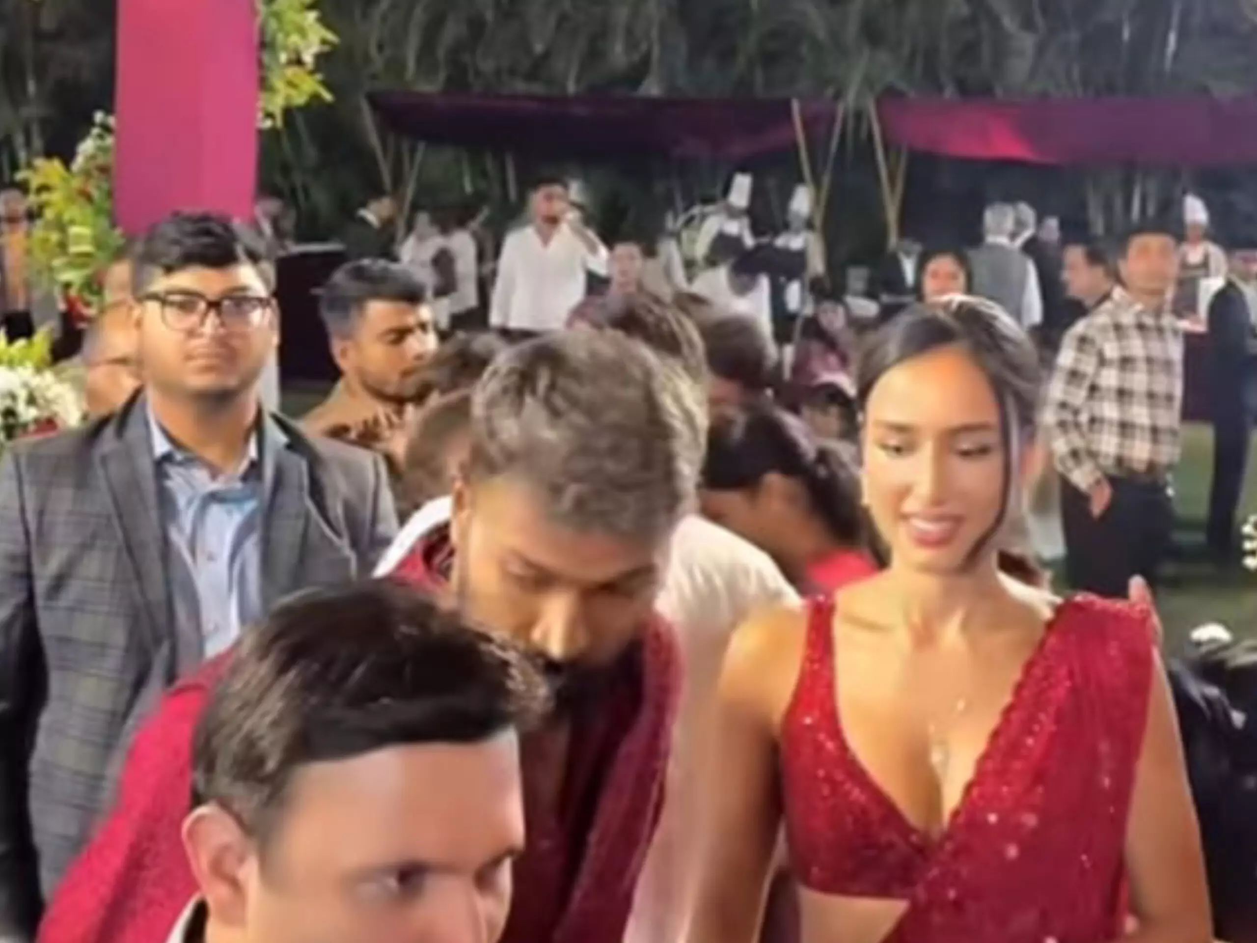 दोस्त की शादी में साथ नजर आए हार्दिक पांड्या और माहिका शर्मा, रेड आउटफिट में ट्विनिंग ने खींचा फैंस का ध्यान
