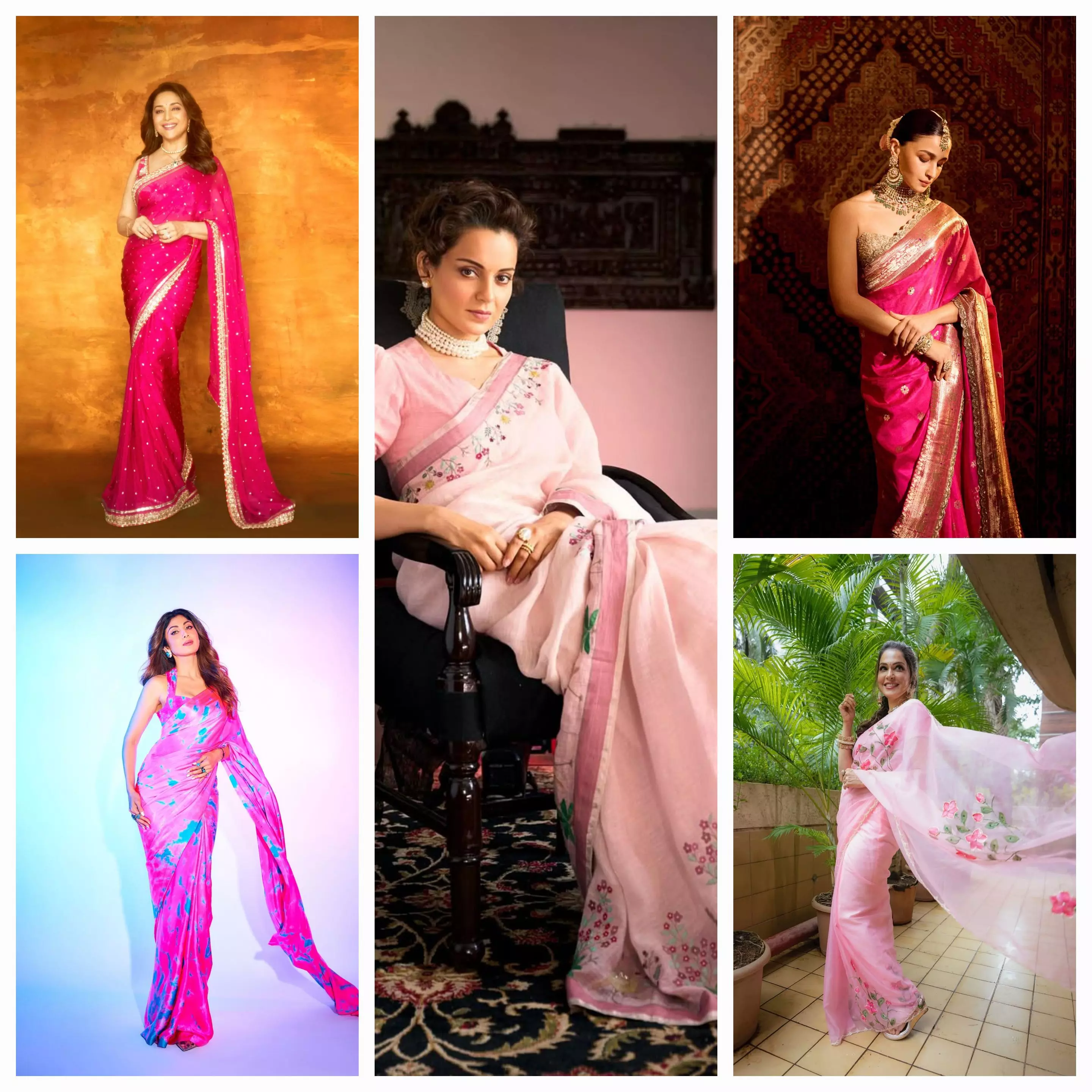 पेस्टल ड्रीम्स से लेकर फ्यूशिया फ़ैंटेसीज़ तक: बॉलीवुड क्वीन कंगना रनौत, ईशा कोप्पिकर, शिल्पा शेट्टी, माधुरी दीक्षित और आलिया भट्ट ने कैसे साबित किया कि पिंक साड़ी है स्टाइल की असली पावर मूव